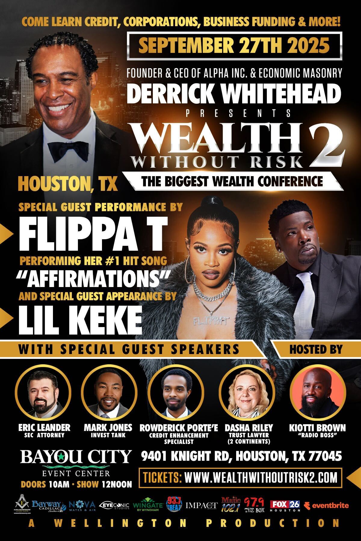 Join us for Billion Dollar Financial Coach Derrick Whitehead's "Wealth Without Risk 2 Tour" where you will have the opportunity to learn how to build and secure your wealth without taking unnecessary risks.